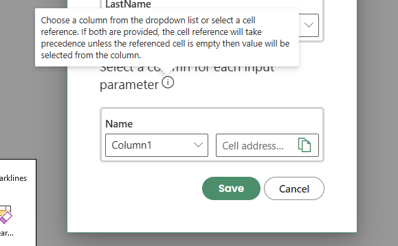 The add-in searches for a named cell that matches the return column name.