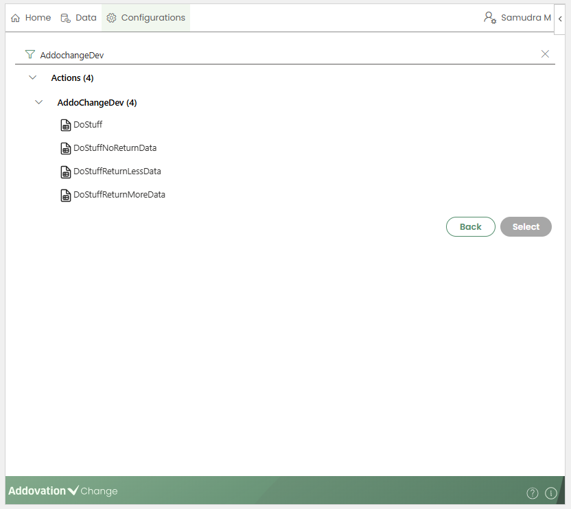 This opens a new window where creators can search for available actions.