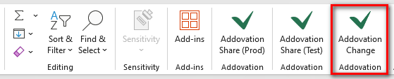 - The task pane is opened by clicking the Addovation Change button in the