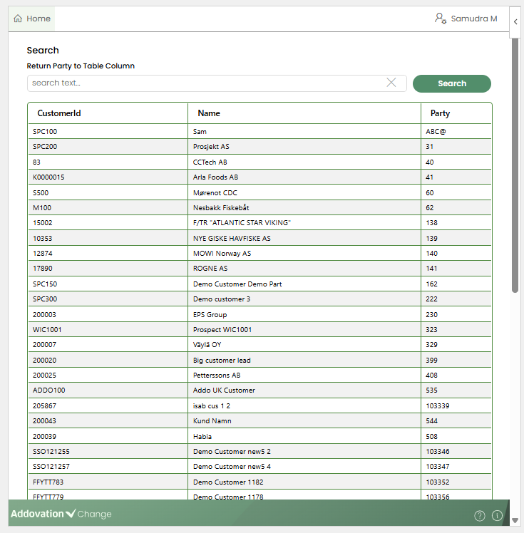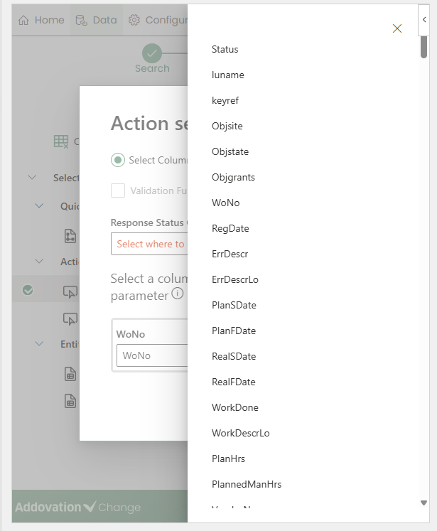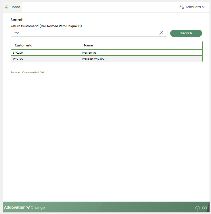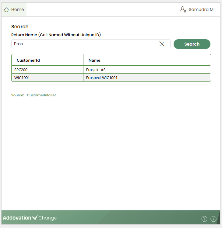 cellortable column.When triggered, a searchable, multi-column results table appears in the Change panel, displaying values retrieved from the configured data source.