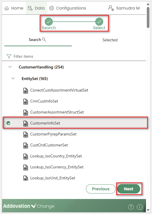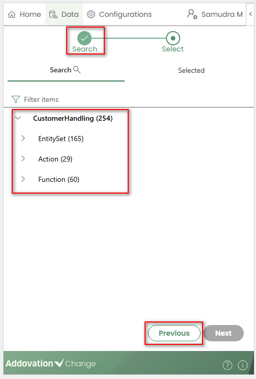 Entity Sets,Actions, andFunctions.You can navigate back to the projection search results at any time by clicking the