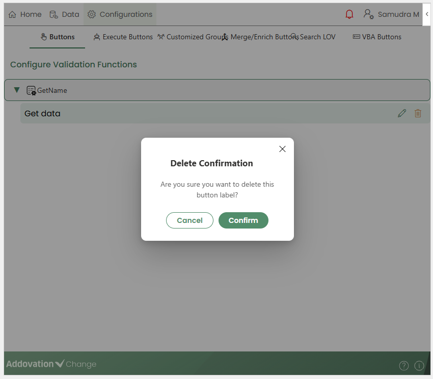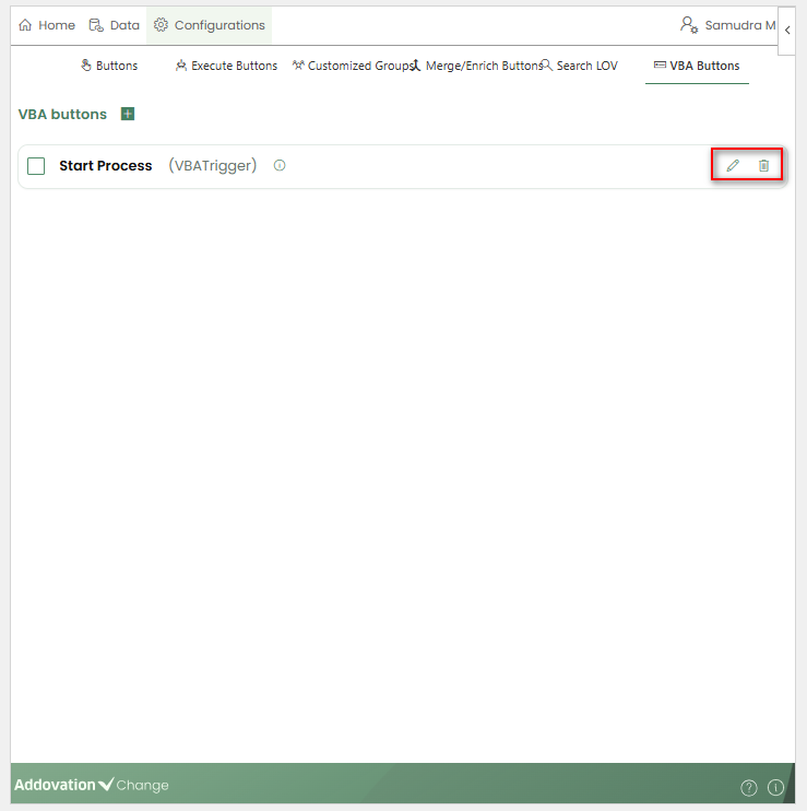 Delete: Opens a confirmation pop-up. Once confirmed, the selected VBA button is removed.