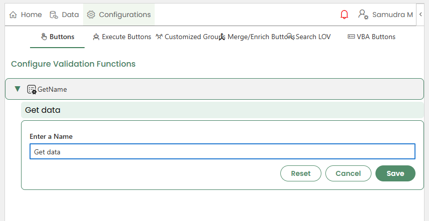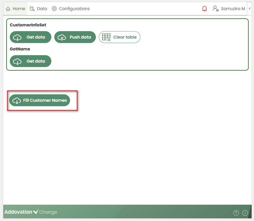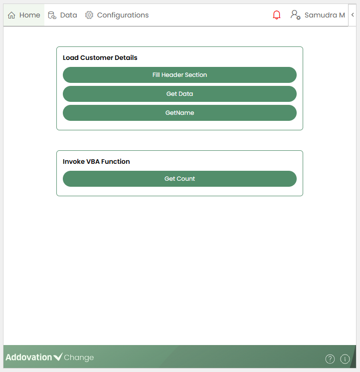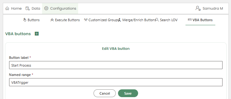 Once saved, the newly created VBA button appears on the Home page and is available for both creators and users to invoke.