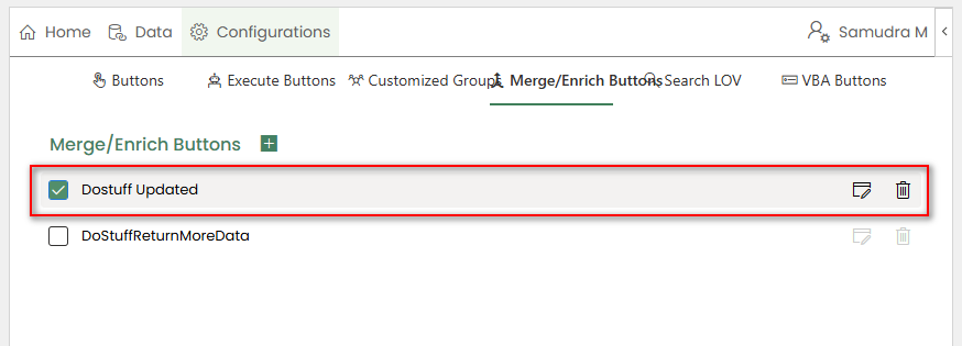 All created Merge/Enrich Buttons are listed under the Merge/Enrich Buttons tab.