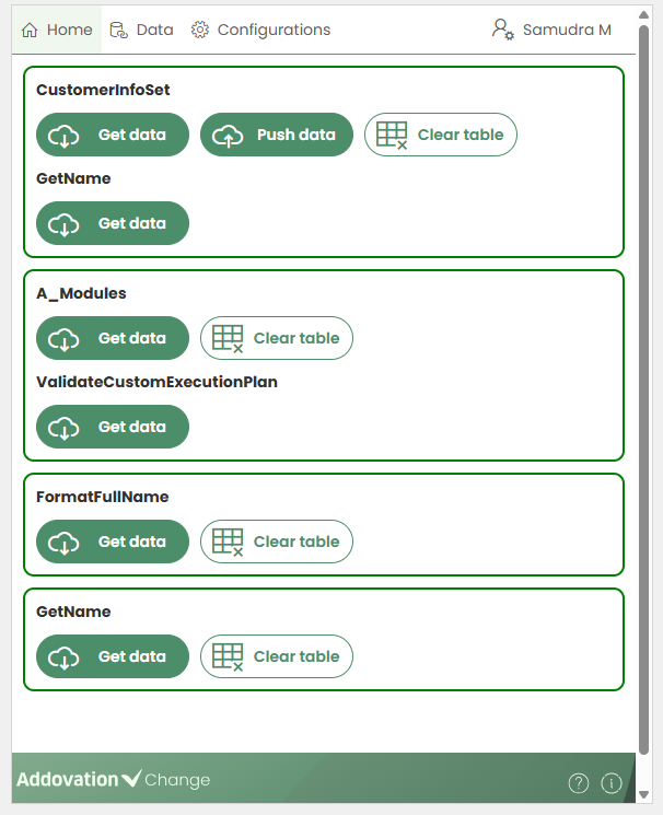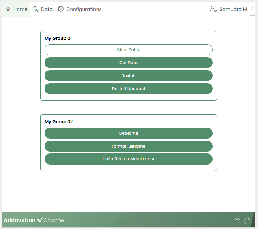 customized button groupshave been created, they are displayed on the Home page accordingly.