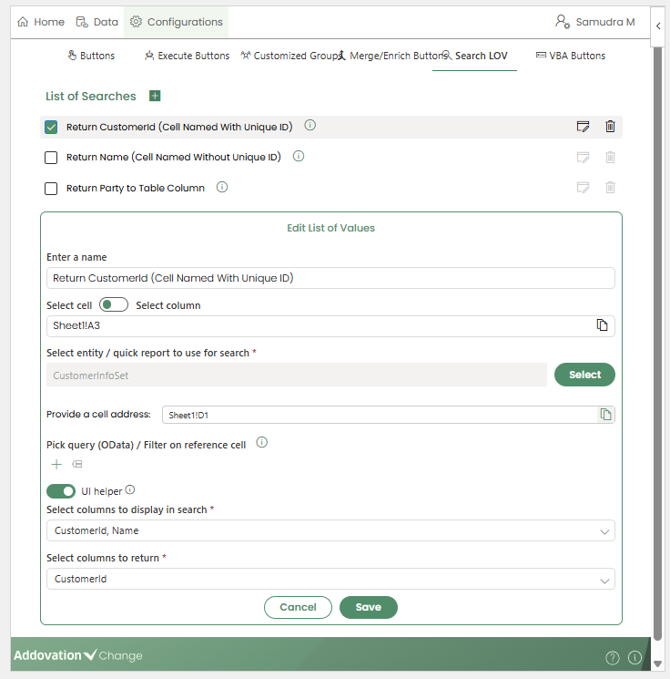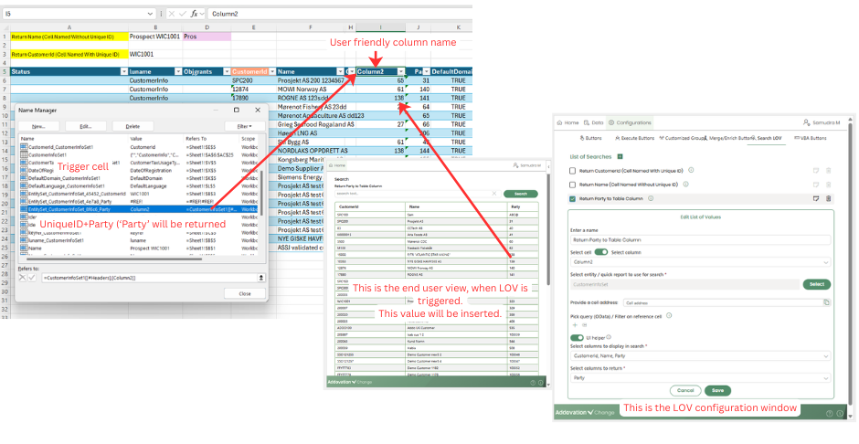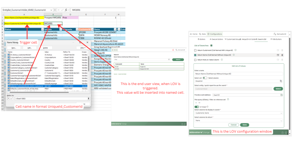 - This approach ensures that values are returned to the correct cells, even when multiple Search LOVs are used within the same workbook.