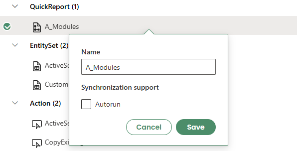 Get: Populates the table by retrieving data.Add: Adds new items by inserting rows into the table.Update: Modifies existing items in the table.Delete: Removes items from the table.Autorun Get: Will run the entity set automatically, i.e. clear the table and fetch the data again, when the user signs in to the application.