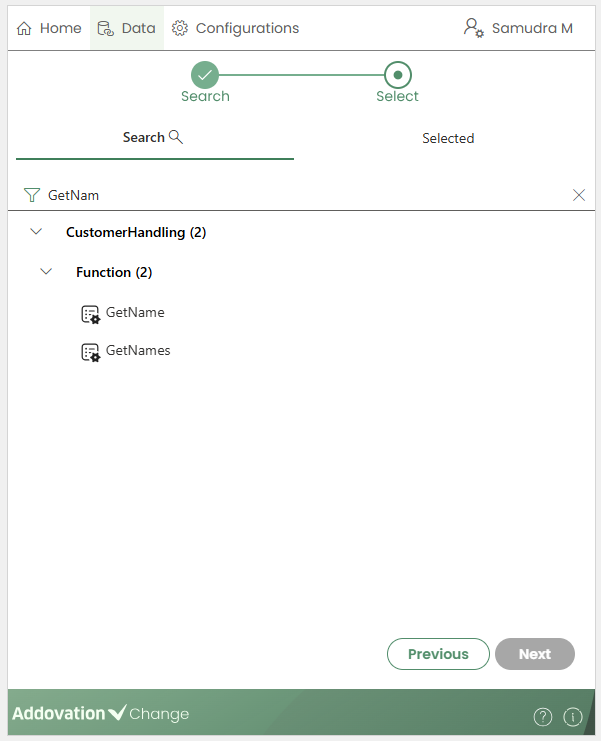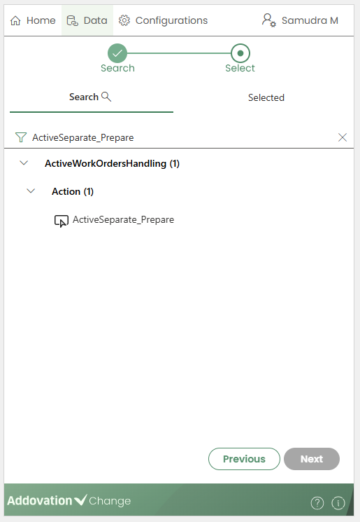 Previousbutton.The list can be filtered by typing in the search field.