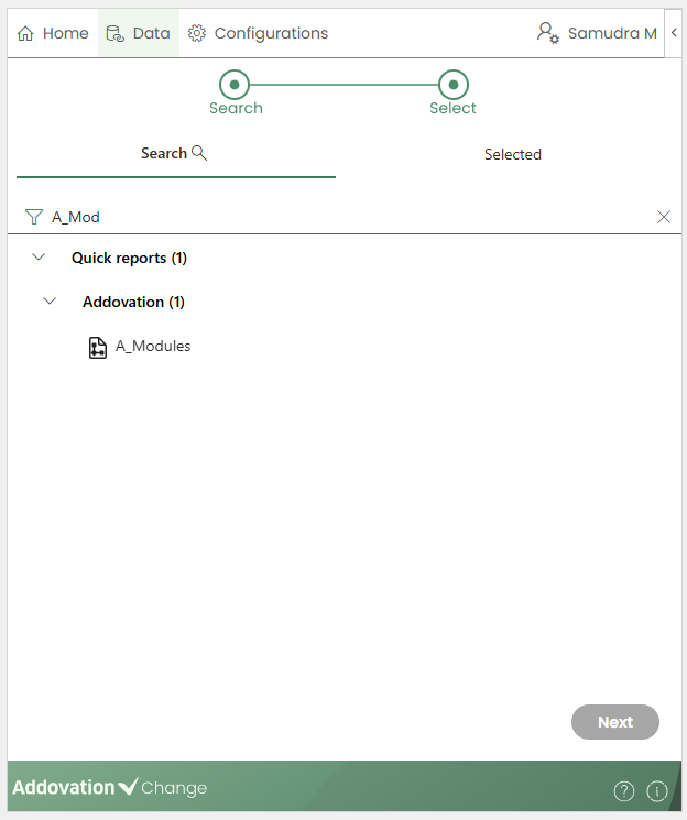 Selectstep in the progress bar will be marked as complete, and users will be taken to theSelectedtab immediately after double-clicking or clickingNext.
