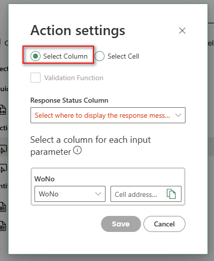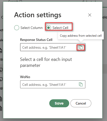Select Cell: Select the Select Cell option using the radio button, then specify the cell address where the Search LOV should be triggered.