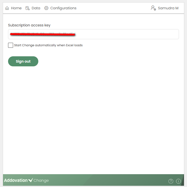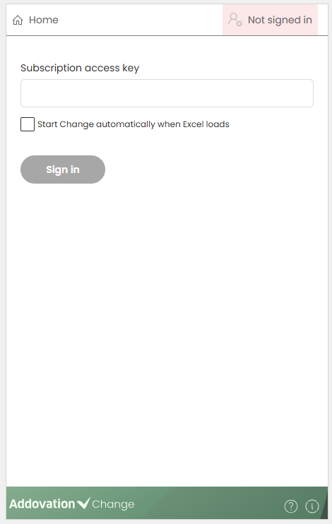 Cloud Portal.Subscription access key is required to connect to the backend and determine the user’s role in the Change add-in.