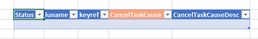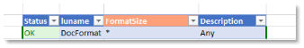 Statuscolumn automatically added as the leftmost column, which will display the status from saved operations.Key columns will be colored with a different color. The user can add more columns to the table if necessary.