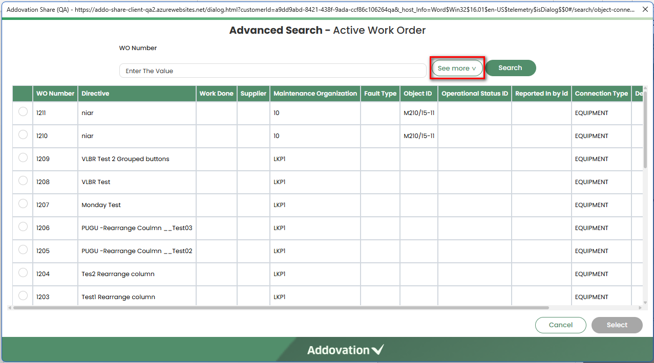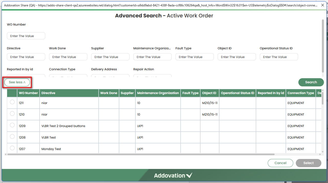 See Moreoption loads additional search options and the additional search options can be hidden again by clicking onSee Lessif required.The system will display 25 default records when the Advanced Search window initially opens.