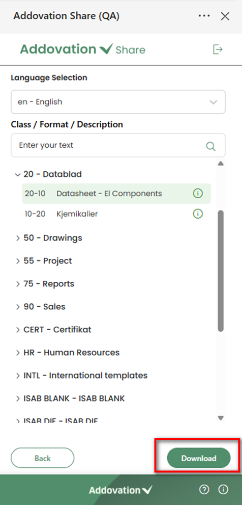 highlighted, and theDownload buttonis enabled. Only one template can be downloaded at a time.