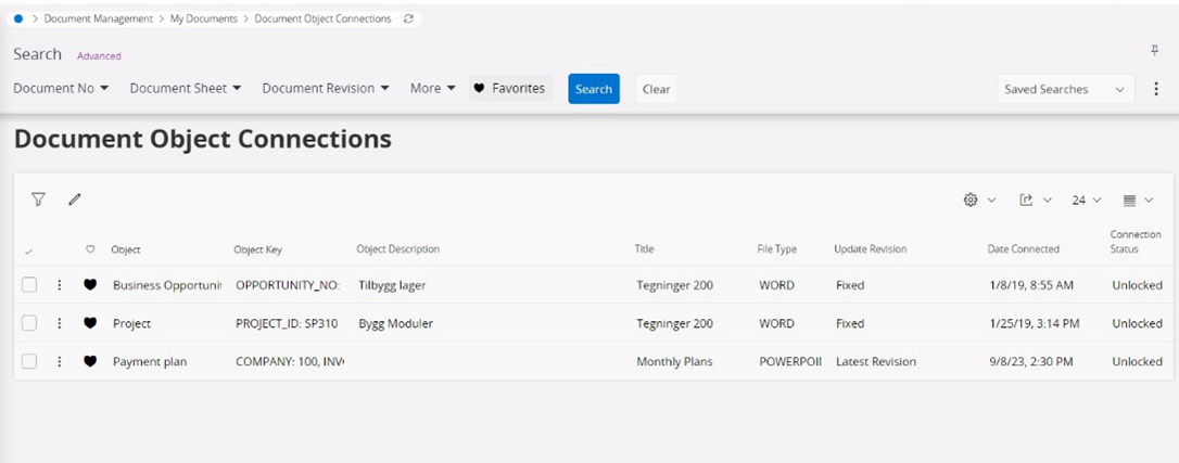 Favoritesobject connection will be selected by default. User favorites object connections are the once user selected as favorites in Document Object Connections in IFS.