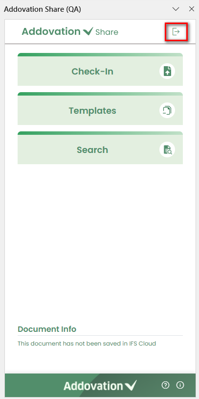 - Once signed in, the user gains access to the landing page. To log out of the application, the user can click the logout icon provided at the top right corner of the add-in.