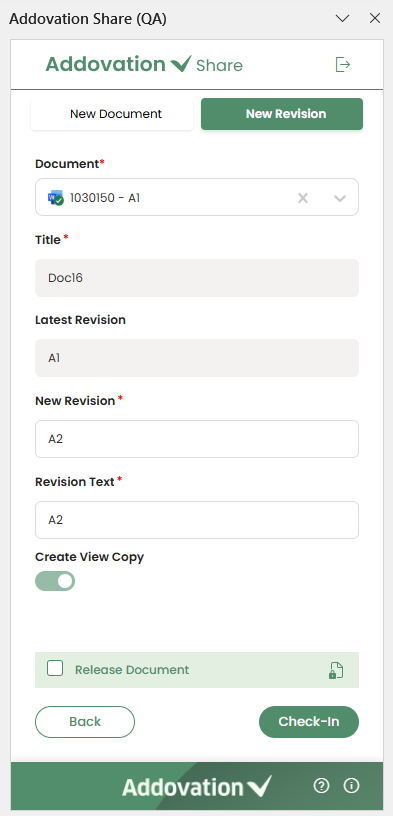 - Check In New Revision