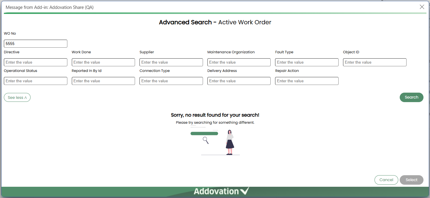 Selectbutton, which will only be enabled if any objects were selected from the search results.The selected objects will be moved to