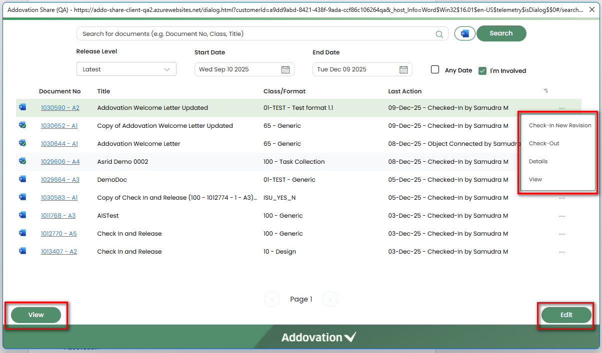 Check-Out, the document will be checked out from IFS. Once checked out, the menu label will change toUndo Check-Out, allowing the user to revert the action if needed.The