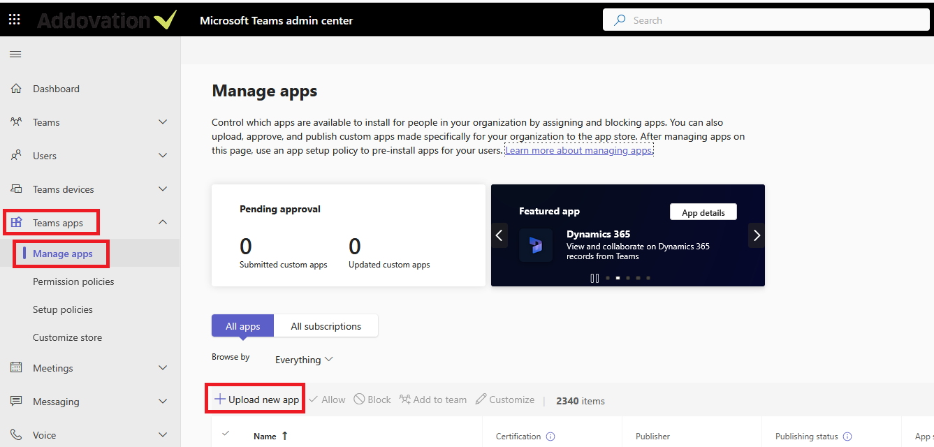 To integrate the Teams Integration App with MS Teams, you need to upload it to the MS Teams Admin portal to make it available as an app in MS Teams.