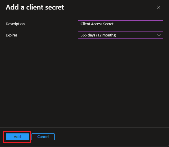 Client Secret is required configure the Teams Integration in Addovation Cloud Portal.