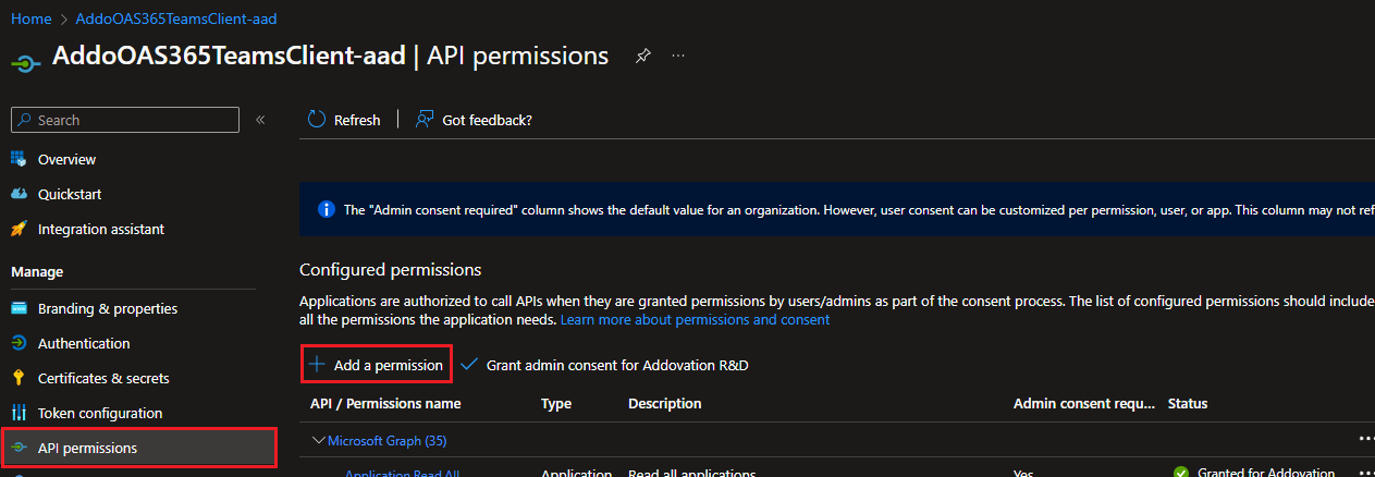 Client Secret is required to configure OAS 365 Teams Integration in Addovation Cloud Portal.