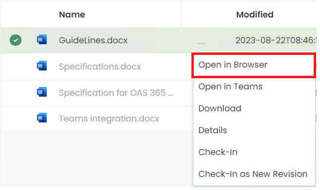 Addovation Share Teams Integration Solution allows users to upload documents/files and retrieve them from IFS and ability to check-in and check-out files from IFS Application.
