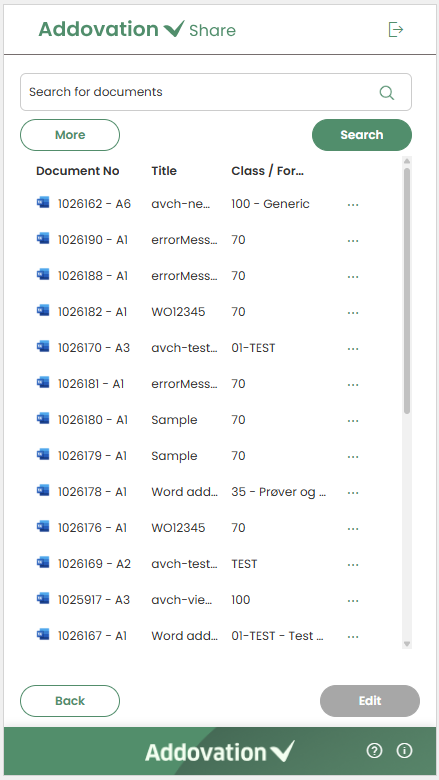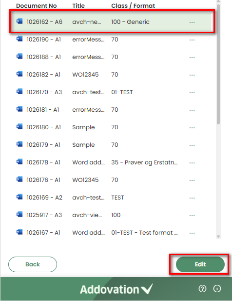 Editbutton remains disabled until a document is selected.When clicked, the document is