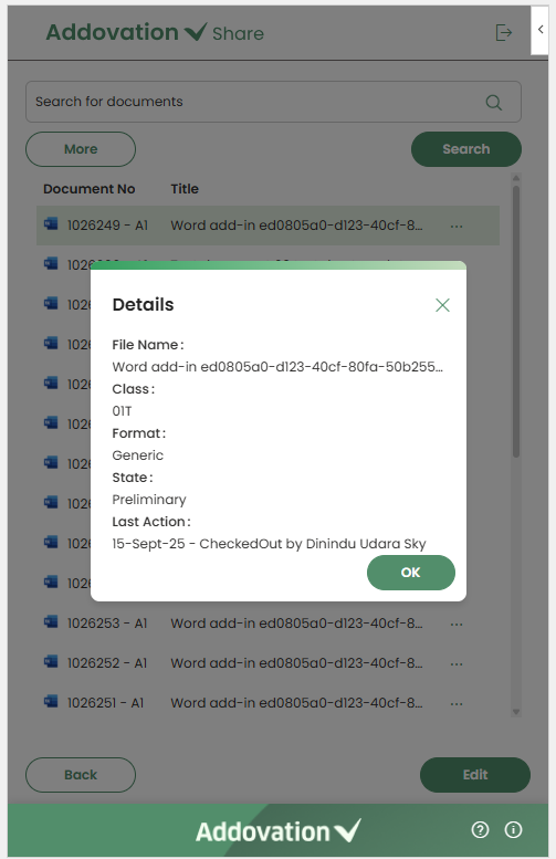 Detailsoption from the menu, a pop-up window will appear displaying the following document information:- File Name