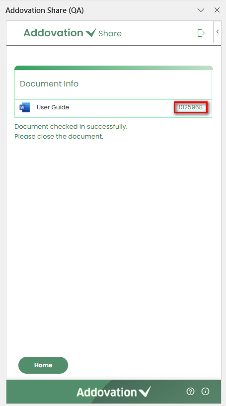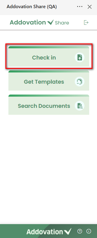 - In order to check in documents using add-in, user may click on the “Check in” option from the landing page. It initiates the process of checking in the document into IFS and directs users to a new screen.