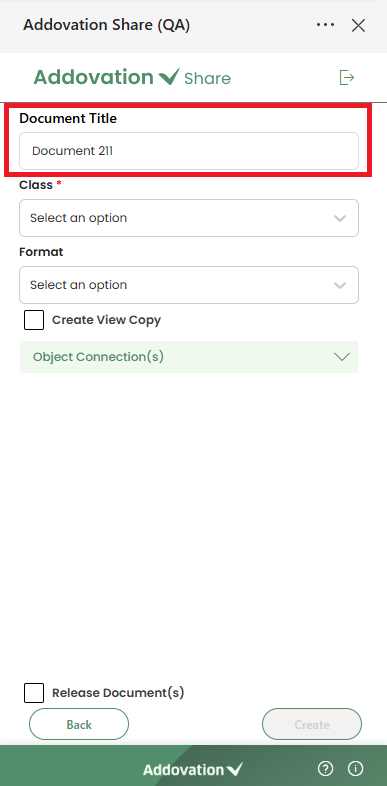 Document Titleis automatically identified and displayed at the top of the pane. The user has the option to edit this title if needed.