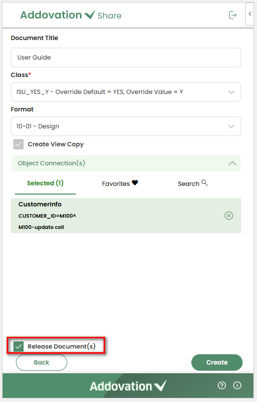 Release Document(s)checkbox. If the checkbox is not selected, the document will be checked into IFS without being released.