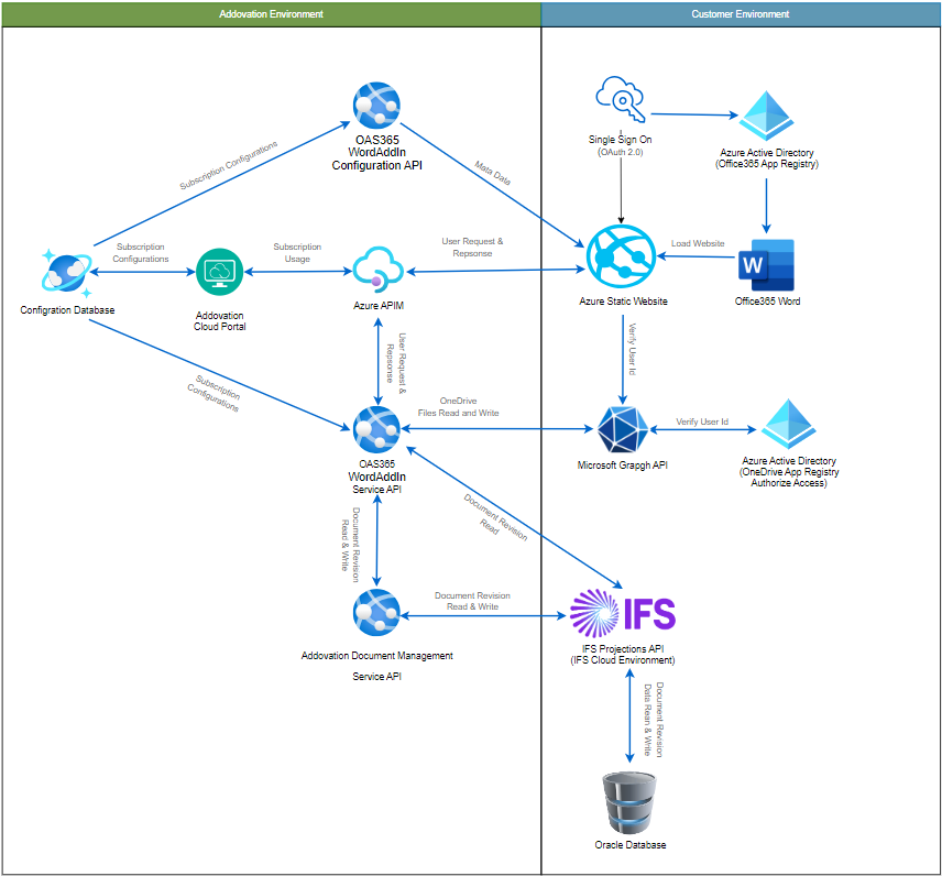 Share Word Add-in Service APIendpoints andAddovation Document Management Service APIendpoints must be whitelisted in IFS environment. - A background job and indexing in the Oracle database needs to be put in place.