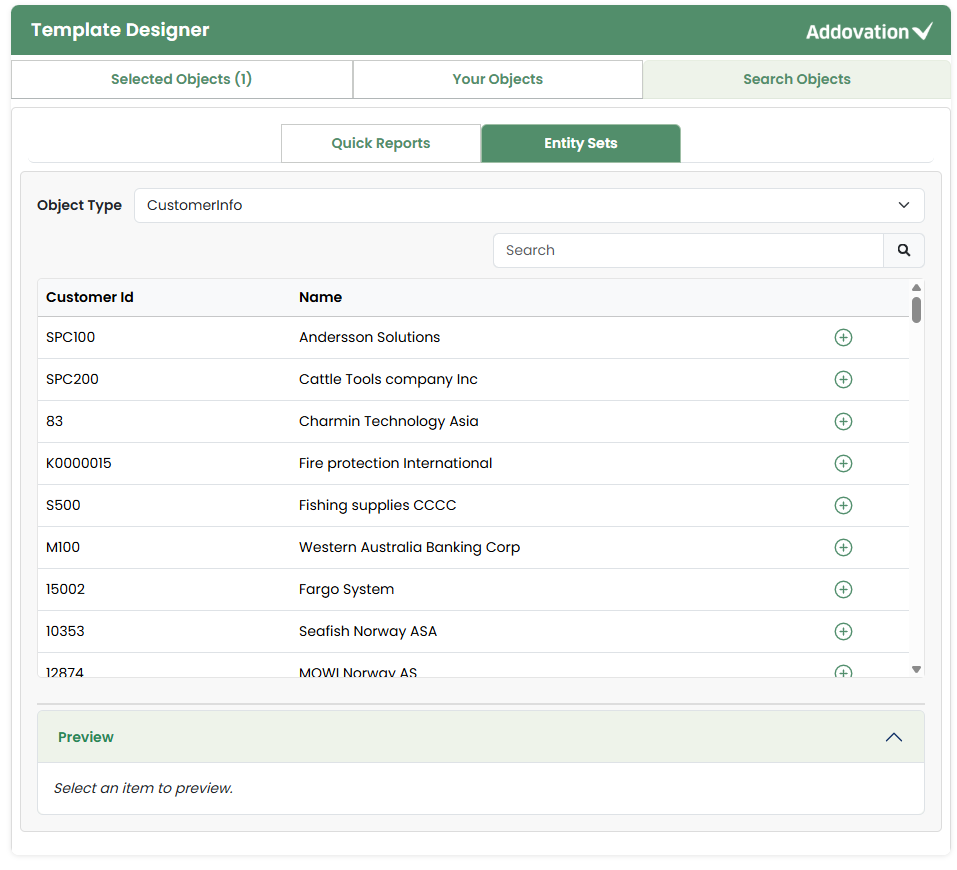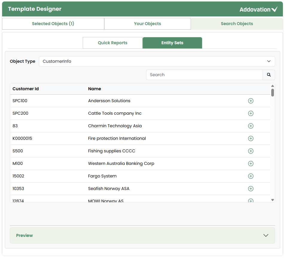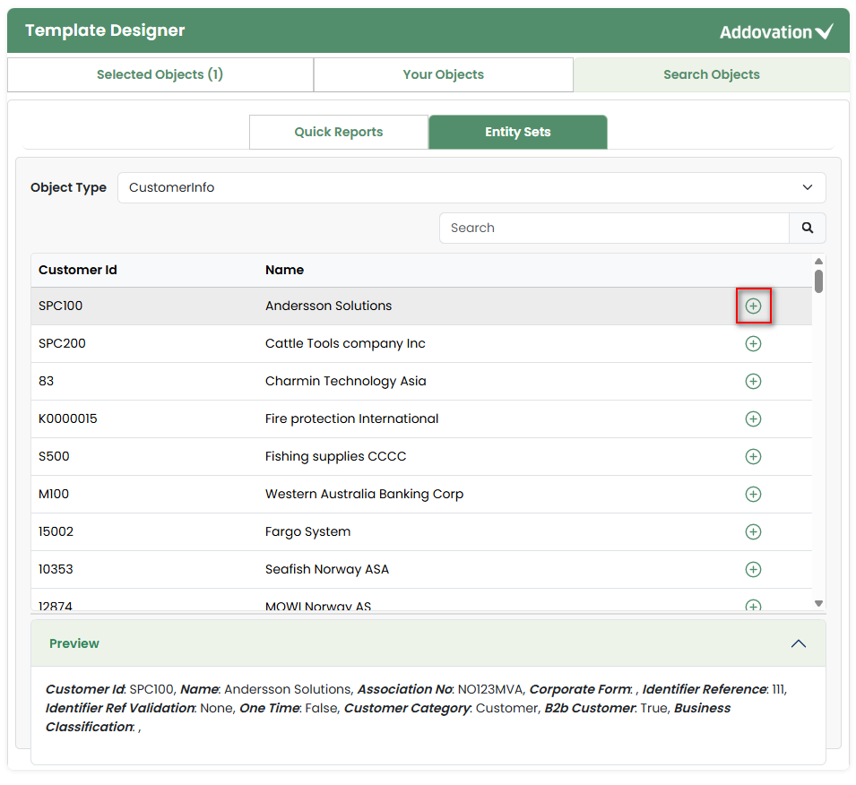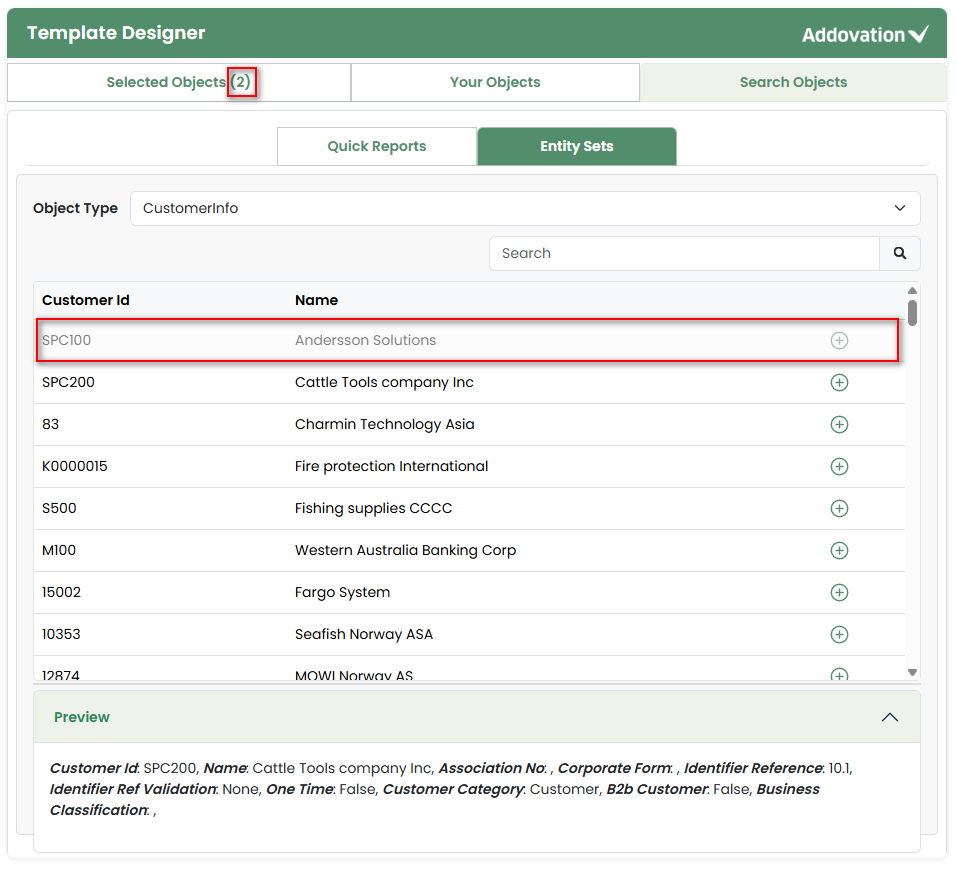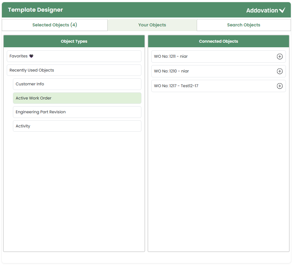 Once the user clicks the plus icon, they are automatically directed to the Selected tab, and the count indicator next to the Selected Objects tab will update accordingly.