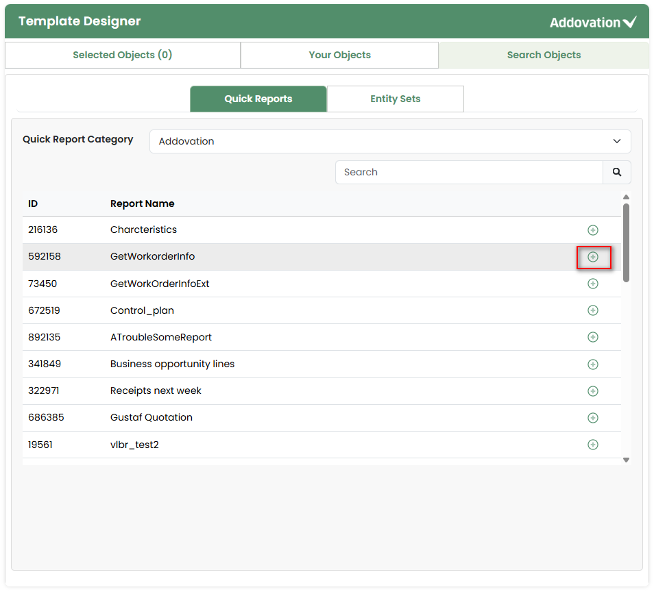 Search for Quick Reports