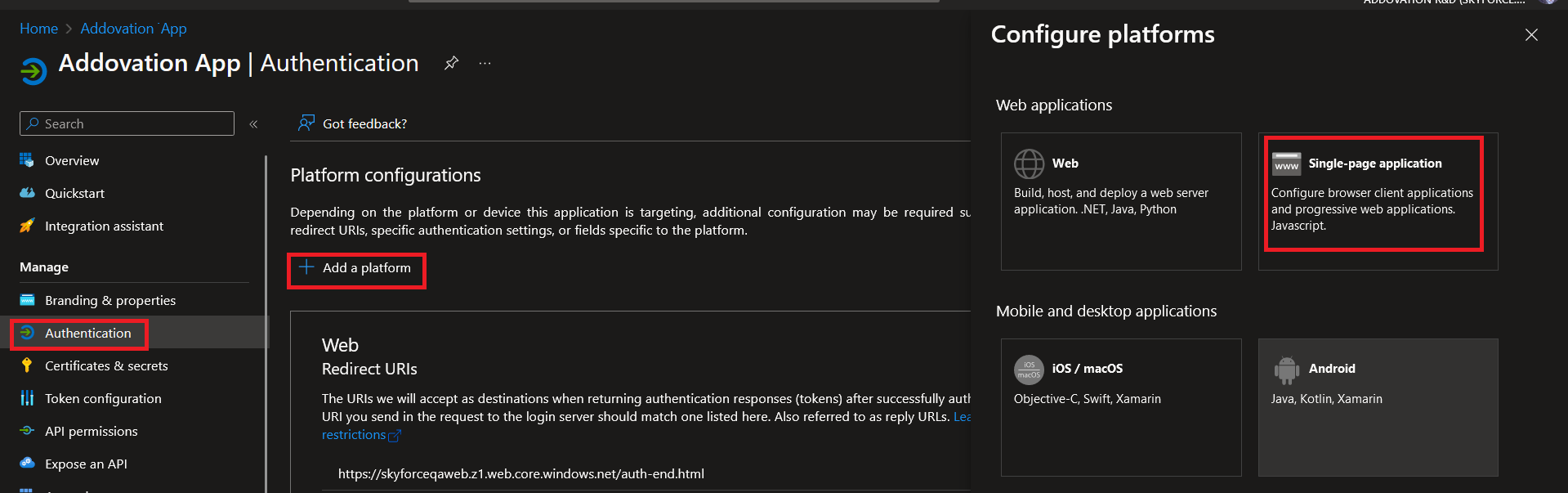 (not necessary to grant permissions for Addovation services. These permissions will be applicable to the components deployed on Customer tenant).
