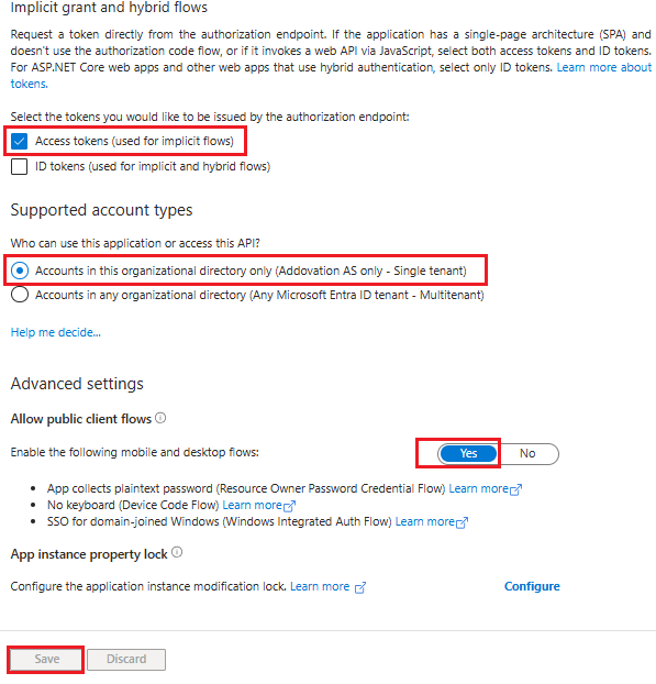 - Supported account types: Select 'Accounts in this organizational directory only (Addovation AS only - Single tenant)'.